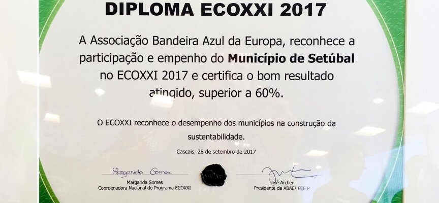 A bandeira verde ECOXXI, galardão atribuído pela ABAE – Associação Bandeira Azul da Europa, confere a Setúbal o estatuto de Eco-Município, após uma avaliação positiva das ações, práticas e políticas implementadas pela autarquia em diversos domínios da sustentabilidade.